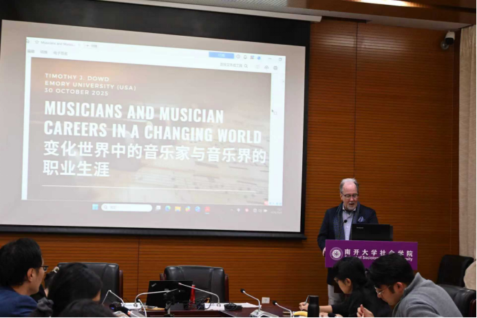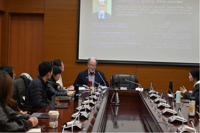 2025年10月27日至10月31日,埃默里大学社会学系Timothy J. Dowd教授对南开大学社会学院进行了学术访问。访问期间,我院举办了文化与艺术社会学系列学术活动,得到了师生的踊跃参与。