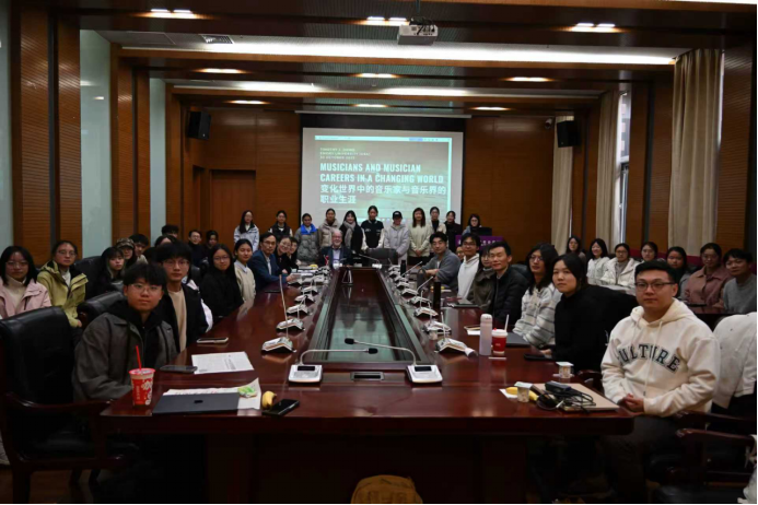 第三项活动是由Dowd教授主讲,题目为“变化世界中的音乐家与音乐界的职业生涯(Musicians and Music Careers in a Changing World)”的讲座,于10月30日中午12:10-13:50在社会学院144会议室举行。讲座由南开大学社会学院社会学系系主任王庆明教授主持。王琰教授、秘舒副教授、张龙副教授、于佳煖讲师、陈柙兵助理研究员、许又姜宇博士等师生出席。