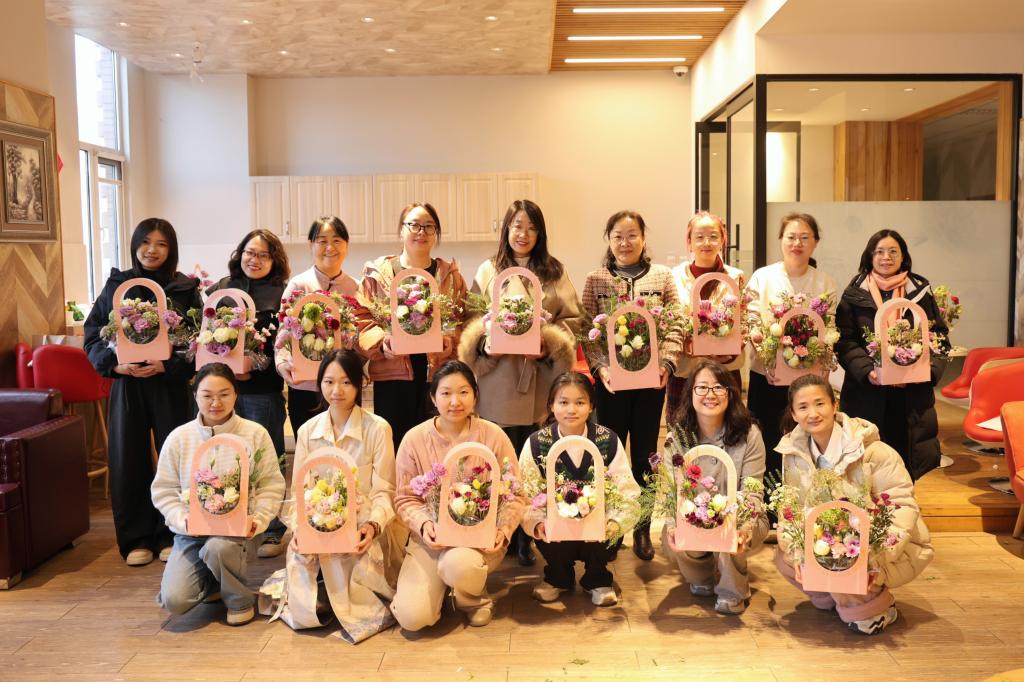 在插花活动现场,五彩斑斓的鲜花错落摆放,散发着阵阵芬芳。学院特别邀请了专业花艺师进行现场指导,从花卉的选择、色彩的搭配到造型的设计,花艺师都进行了细致讲解与示范。女教职工们充分发挥自己的创意与想象力,将不同种类的鲜花巧妙组合。每一件作品都凝聚着女教职工们的辛勤劳动与智慧创造,充分展现出她们对生活的热爱与对美的追求。
