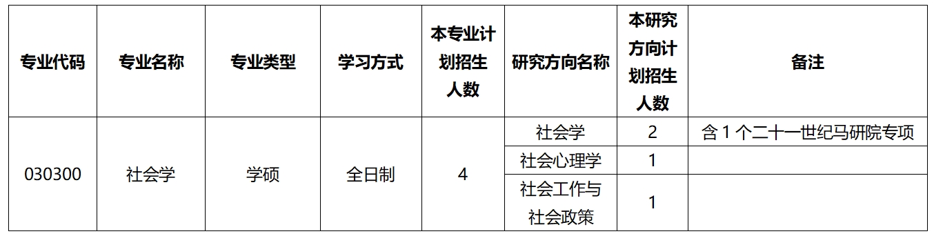 社会学院2026年硕士研究生统考招生各专业招生人数公示(专业学位)
